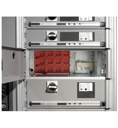帶有安全門裝置的抗電弧型全封閉垂直母線系統(tǒng) (ARCSAFE),采用了獨(dú)有的U槽狀π型銅母線和安全門及散熱型絕緣后蓋板,具有載流量高(最高可達(dá)2000A),當(dāng)抽屜單元被抽出時,垂直母線隨即完全被安全門屏蔽絕緣